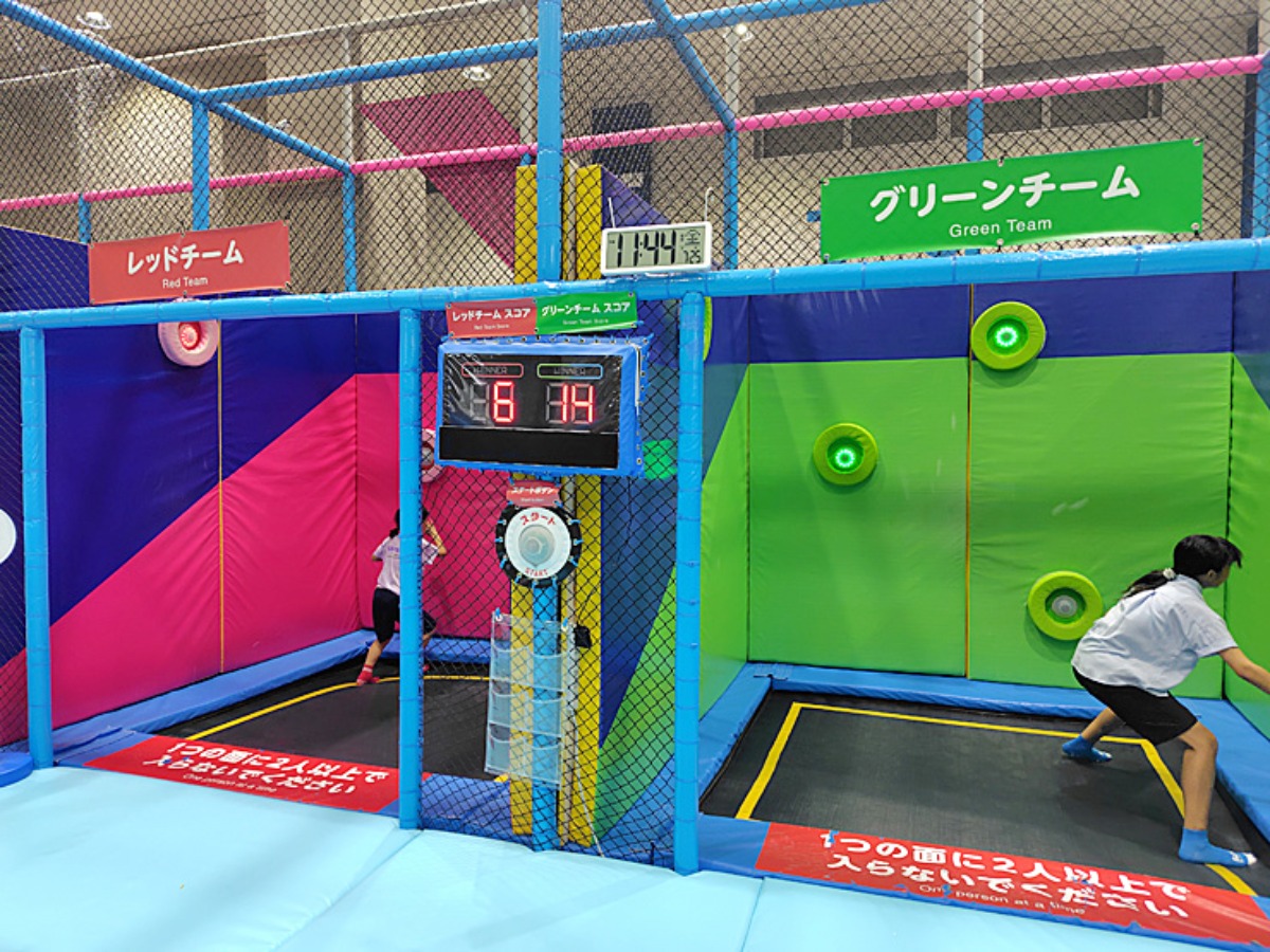 自由にジャンプが楽しめる「フリーゾーン」の他、憧れのダンクシュートが決められる「ダンクゾーン」、ドッジボールができたり、点灯するランプにタッチしたり、と楽しい仕掛けが用意されています。