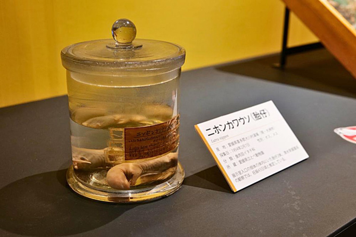 特別展の入り口に展示されている『NKU43総選挙 No.1 大洲のお母さん』の標本は、その時に発見されたニホンカワウソです。