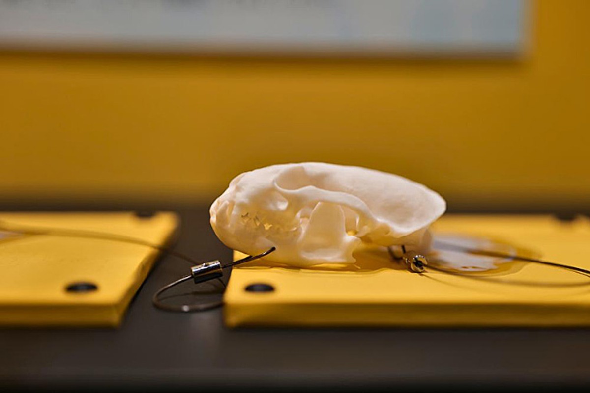 この模型は、科博で大切に保管されていたニホンカワウソの標本『NKU43総選挙No.4 城辺の大浜さん(メス)』のCTスキャンデータを用いて、3Dプリンターで作成した複製です。