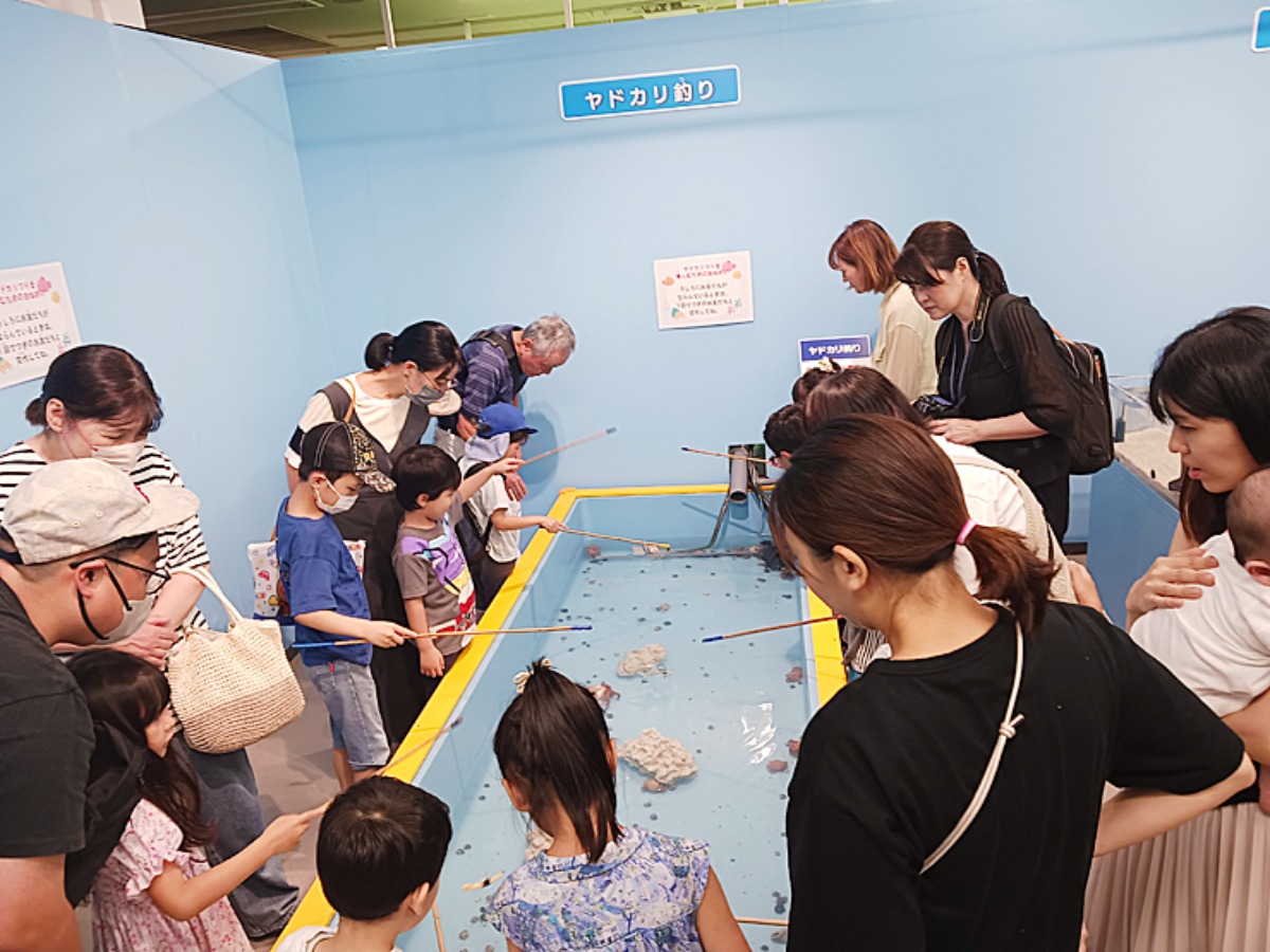 海の生き物ともっと近づきたい方には、毎日開催の「タッチングプール」や「ヤドカリ釣り」体験が大人気。