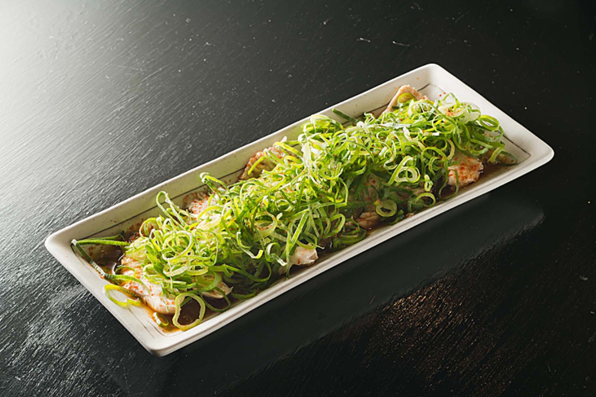 鶏の旨みを引き立てる、爽やかな酸味の自家製ポン酢。たっぷりの青ネギがアクセント