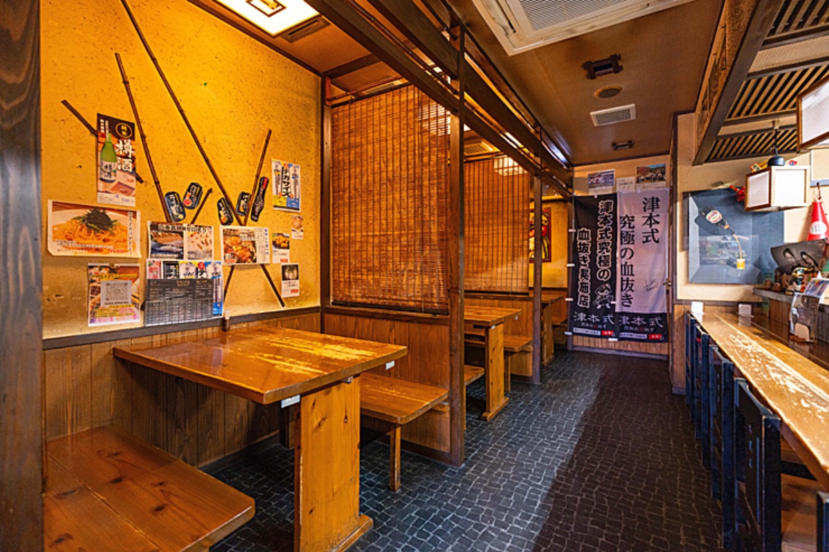 テーブル席もカウンター席もある店内。壁に貼られたメニューにも注目!