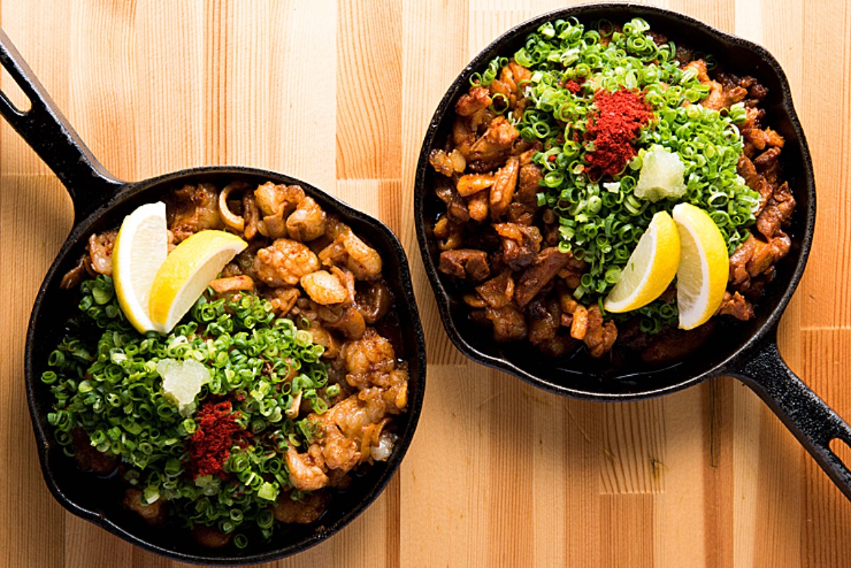 このモツ肉を、まずは「にわか焼き」で味わうのが通の楽しみ方。秘伝の味付けで仕上げており、ホルモンが苦手な人でも楽しめるよう、親鶏と若鶏を使ったものも用意。