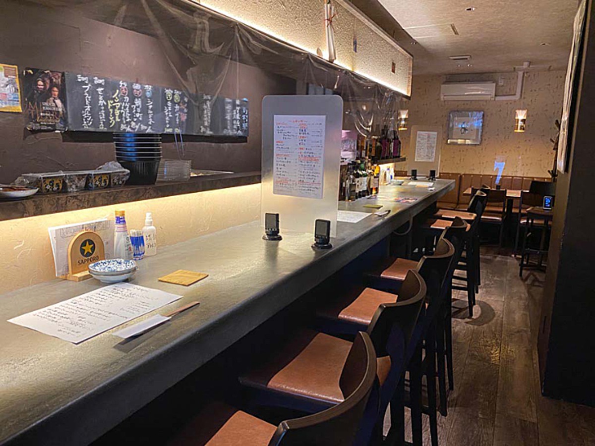 コンパクトな店内は落ち着いた雰囲気。カウンター席で、気ままに一人飲みにも◎