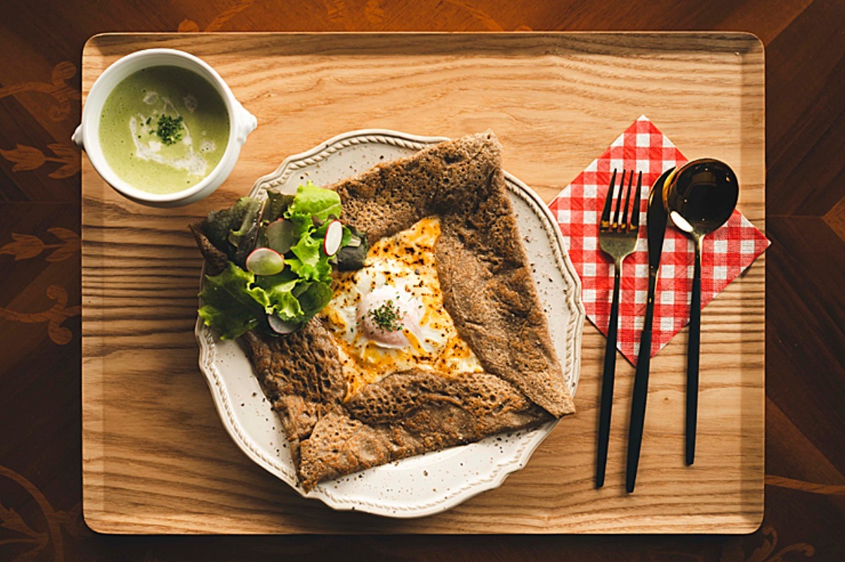 ランチの看板メニューは、フランス伝統のそば粉ガレット。