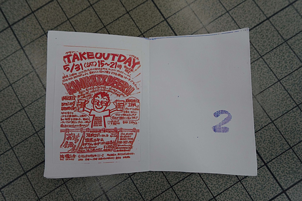 奥さま手作りの「御酒飲帳」。イベントチラシのシールを7つ集めると“良いこと”が起こる!