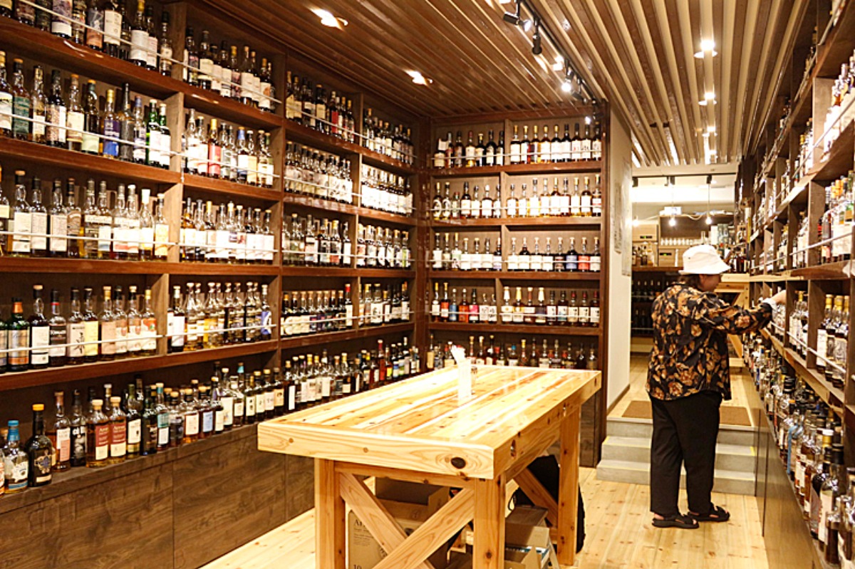 銀天街にあるウイスキーギャラリー。店主が揃えたコレクションは表に出ているだけでも1200本。気になったものは角打ちで飲むことができる。