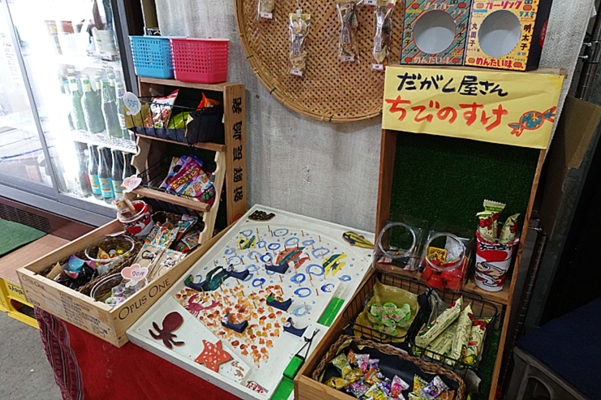おつまみは、店内にある駄菓子コーナーで。日中は近所の子どもも買いに訪れる