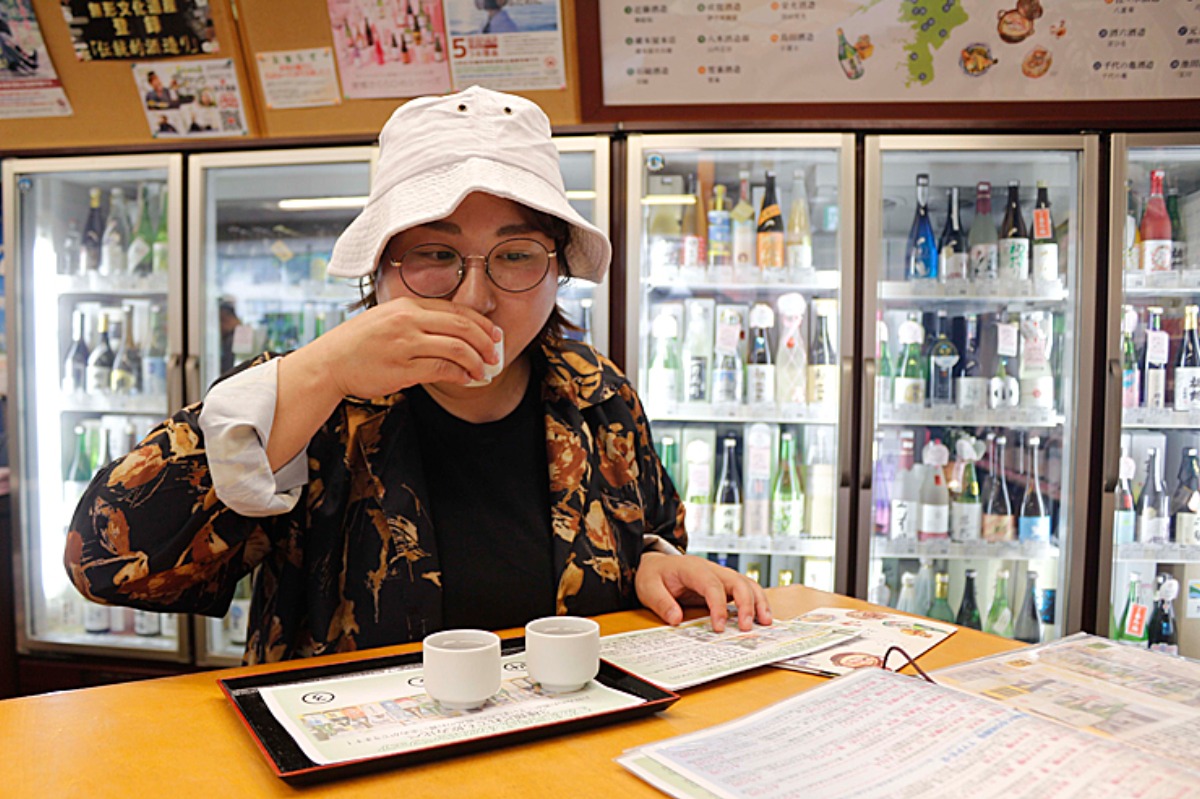 愛媛の地酒が集合するアンテナショップ。角打ちでは、店に並ぶ約150種類の日本酒が味わえる。