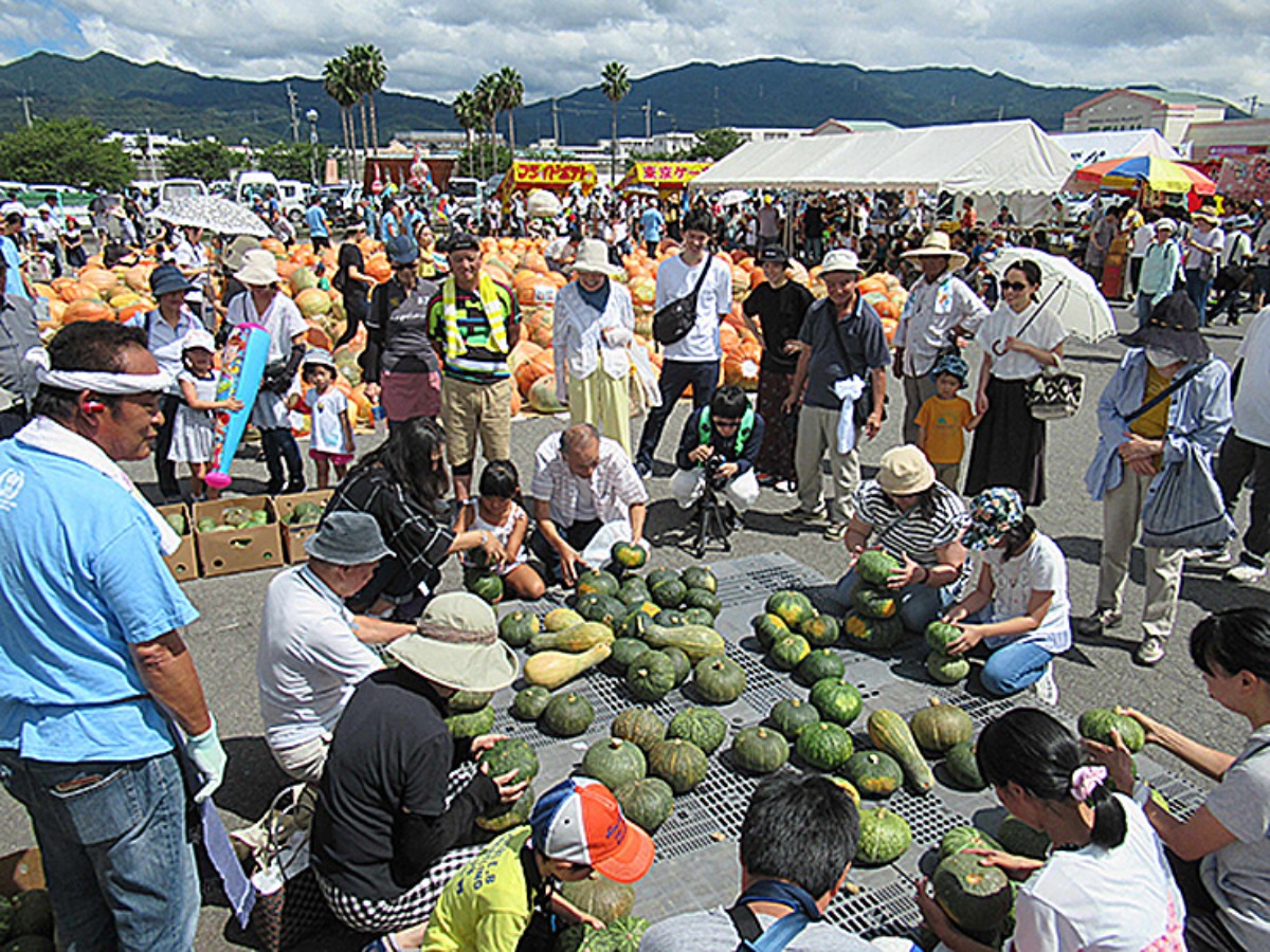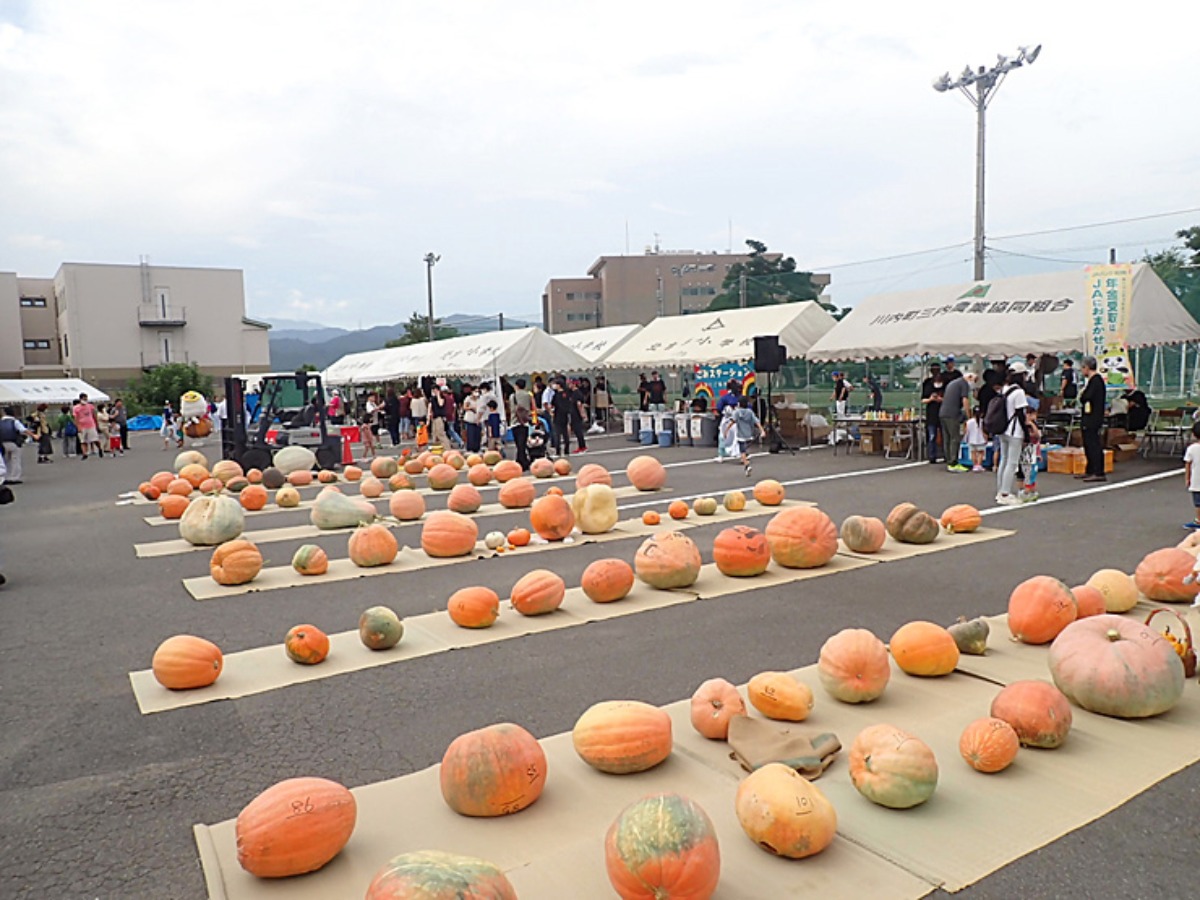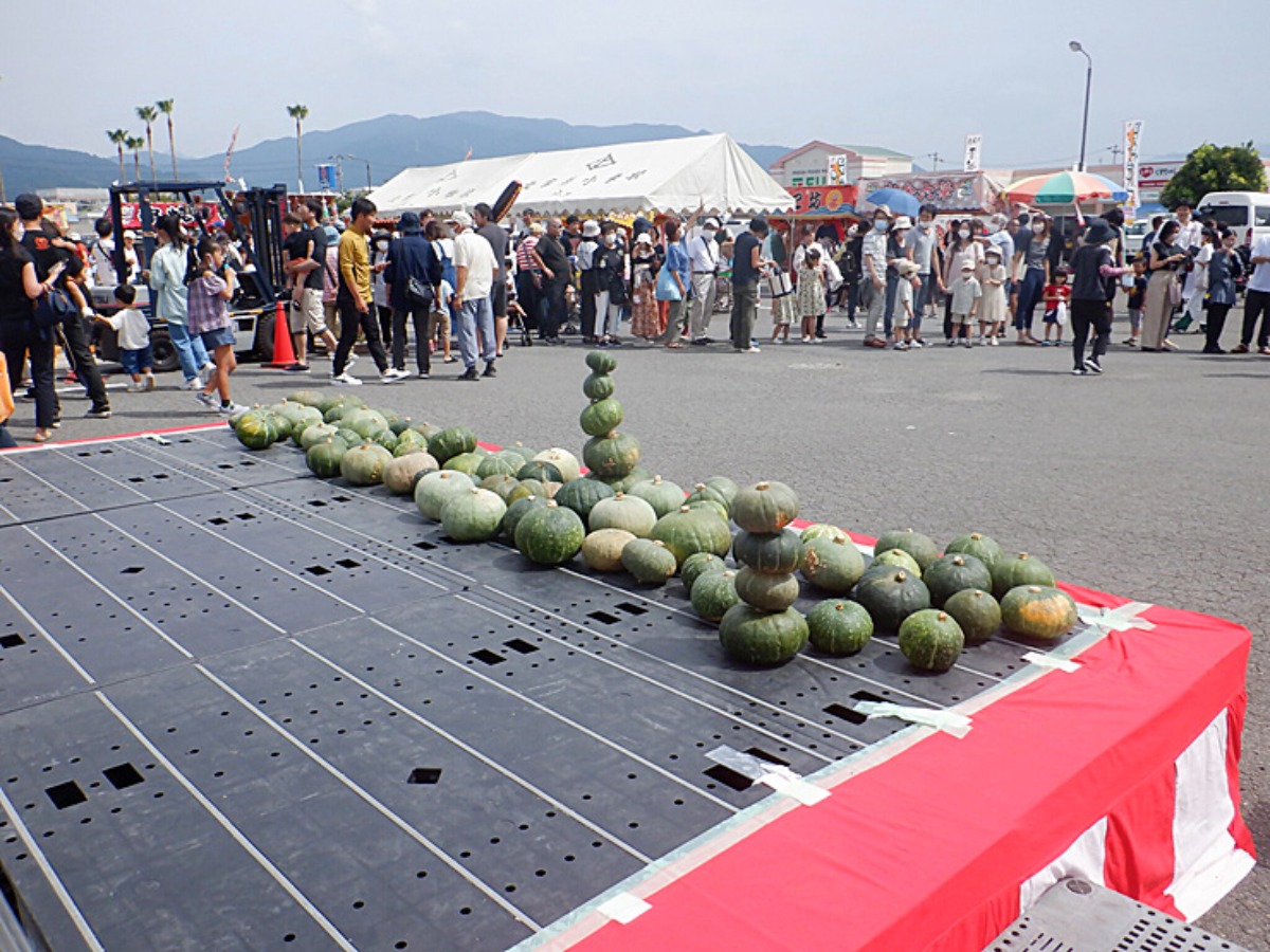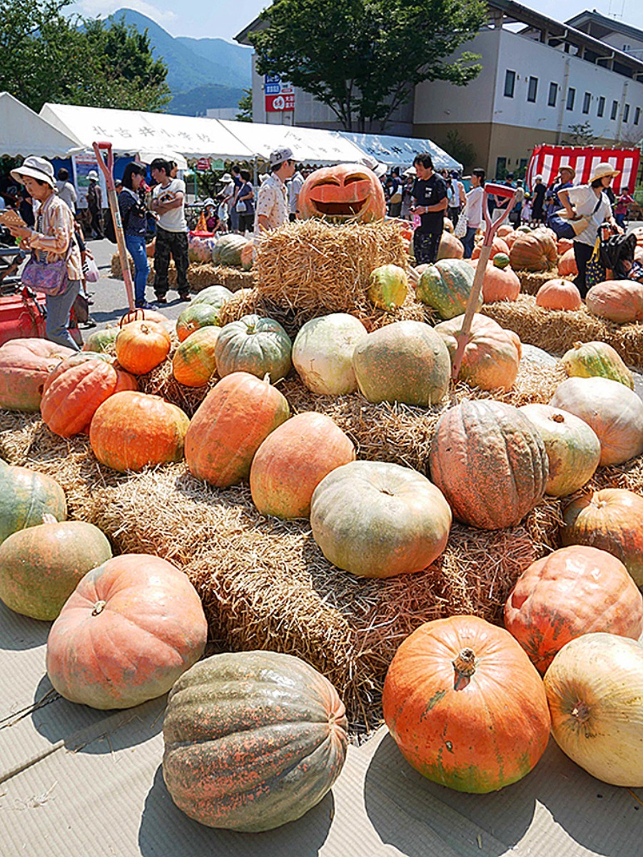 最大の魅力は、直径1メートル近く・重さ200kgを超えることもある「どてかぼちゃ」が一堂に集まる壮観な光景。
