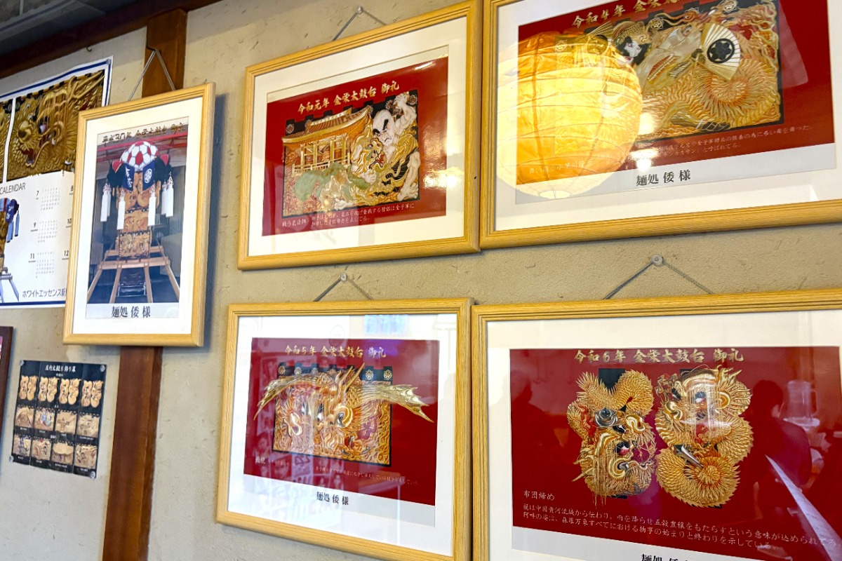 店内で順番待ちの間は、メニューを見たり、地域の太鼓台の写真を見たり過ごしました。