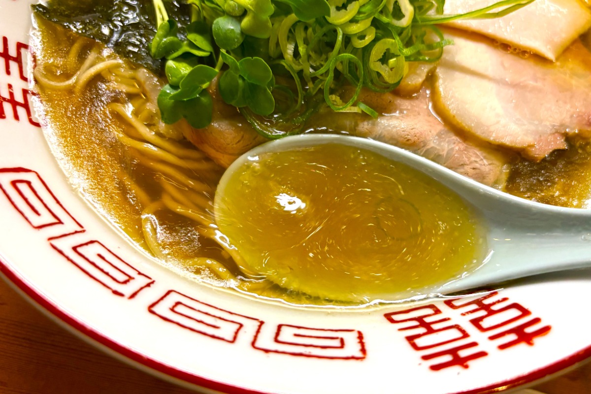 澄み渡るスープにはいりこの旨味がギュッと凝縮され、雑味は一切ありません。