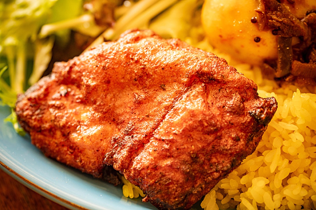 辛さよりも旨みを感じるカレーは具材が主役。具材に風味を纏わせて本来の味を引き立てる繊細なスパイス遣いが、多くのファン魅了している。
