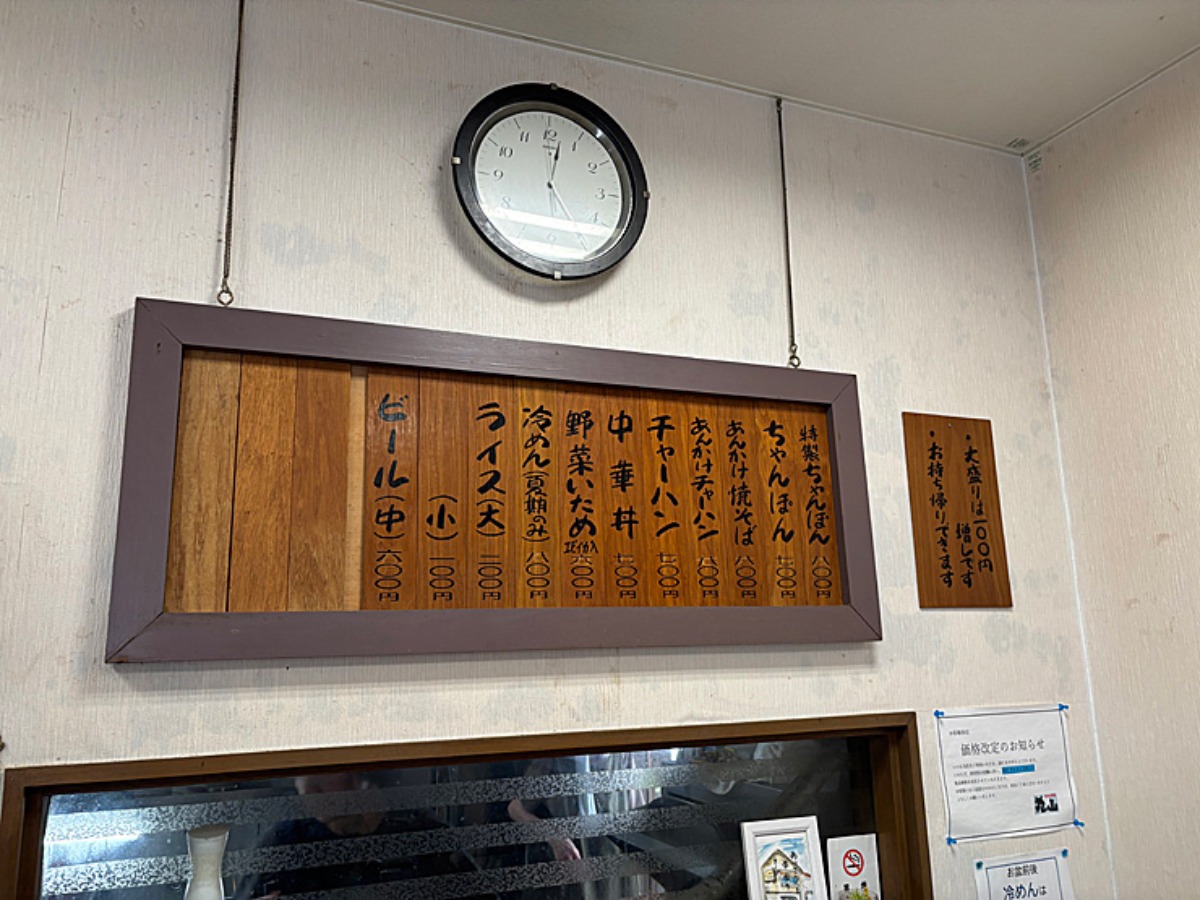 メニューは、ちゃんぽん(700円)をはじめ、特製ちゃんぽん(800円)あんかけ焼そば(800円)チャーハン(700円)など。