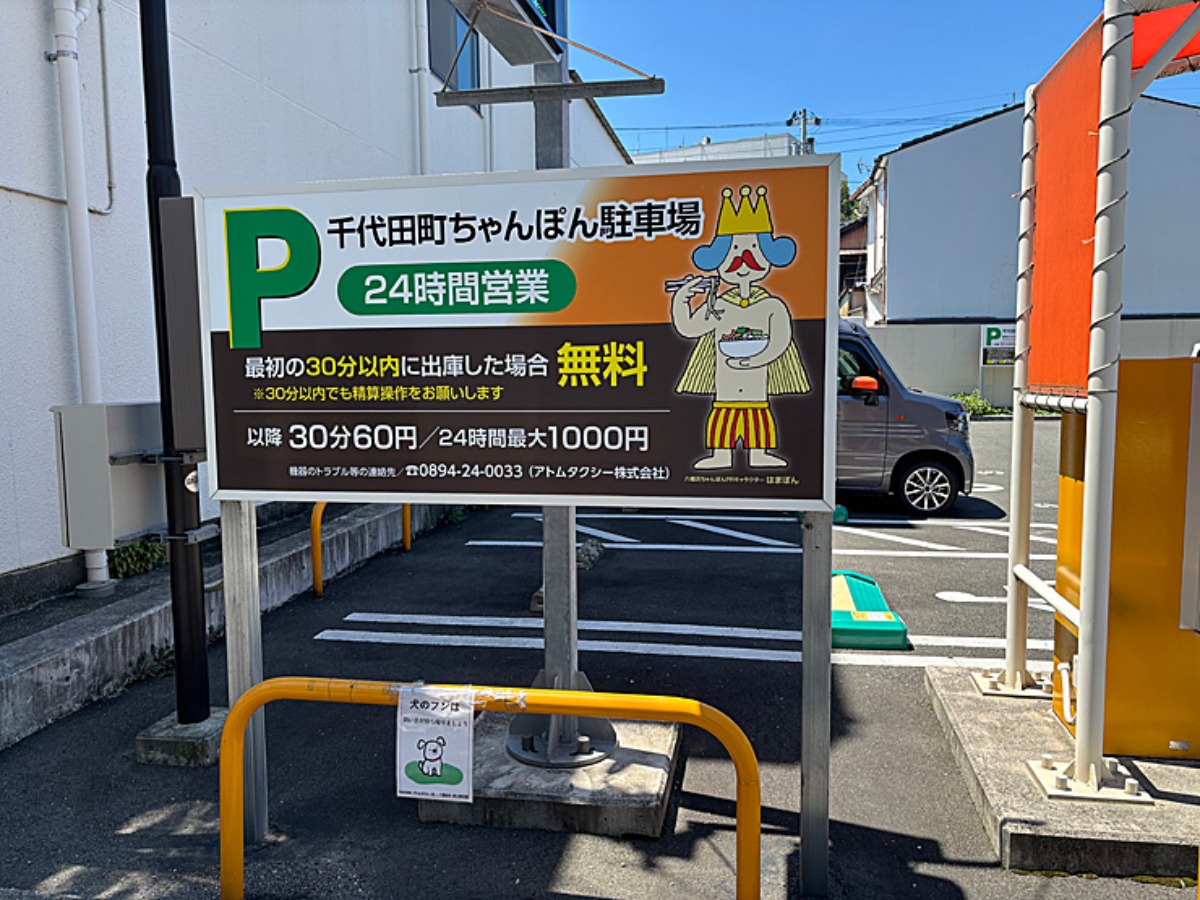 駐車場はありませんが、すぐ近くに市営千代田町ちゃんぽん駐車場があります。