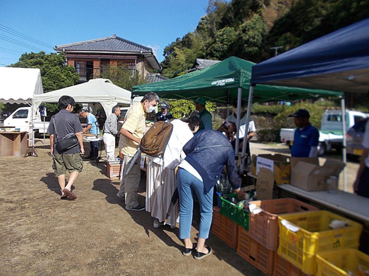この時期ならではの新鮮な野菜や果物が集まる産直市には多くの人が訪れ、里山の穏やかな風景とともに秋の恵みを味わえます。