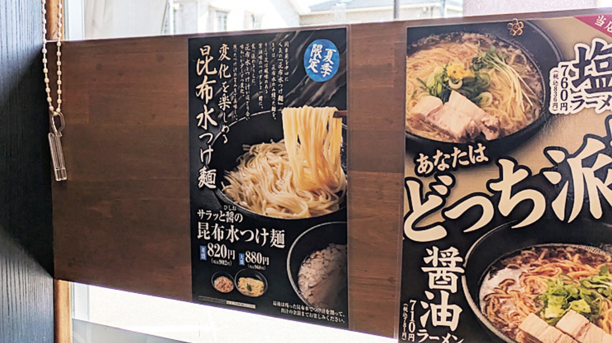 夏季限定の文字が惹かれる「サラッと醤の昆布水つけ麺(並)」税込902円。