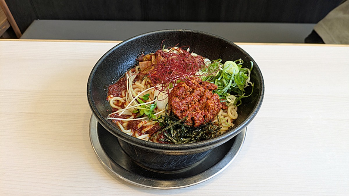 こちらは旦那が注文した「辛まぜそば(大)」税込1,133円。辛いのをよく注文する旦那が「思ってたより辛い」と言ってたので、しっかり辛いんだと思います。