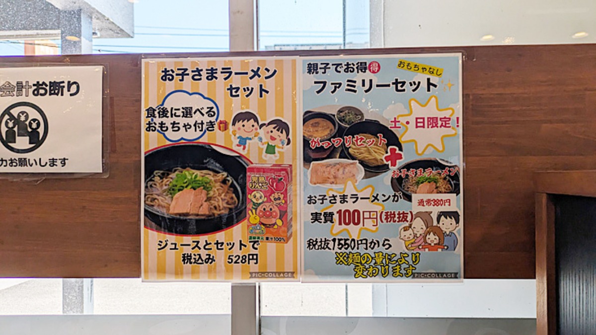 他にも「お子さまラーメンセット」や、土日限定の「ファミリーセット」のお得なメニューもあって、家族でも本当におすすめのお店です。