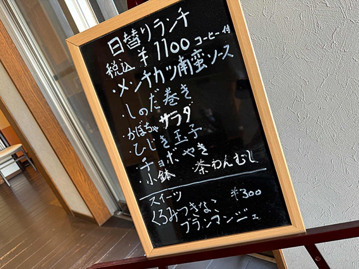 今回ご紹介したのは、めいさんおすすめの2,400円のおすすめランチですが、1,200円の日替りランチも用意してくださっています。毎日来ても飽きのこない「日替り」なのが嬉しいですよね♪コーヒーかオレンジジュースがついて1,200円というリーズナブルな価格!