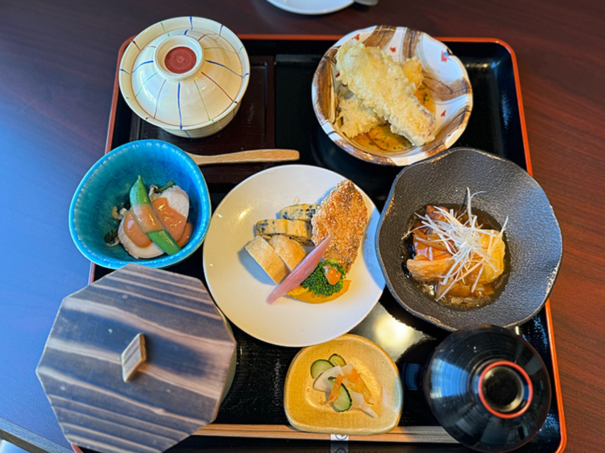 こちらのランチは月替わりでメニューが変わります。季節の食材をふんだんに使った御膳でなんと肉とお魚両方楽しめちゃうんです!お野菜もたくさん使われていてバランスよくいろんなものが味わえるのが嬉しい♪こちらの2,400円のランチは前日までに予約が必要です。