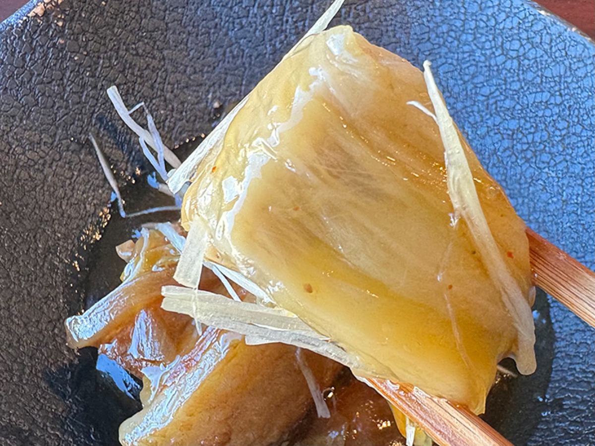 上にソースがたっぷりかかっているので、甘めかと思いきや、全くくどくなくてびっくり!程よい甘みで最後まで美味しく味わうことができました♪