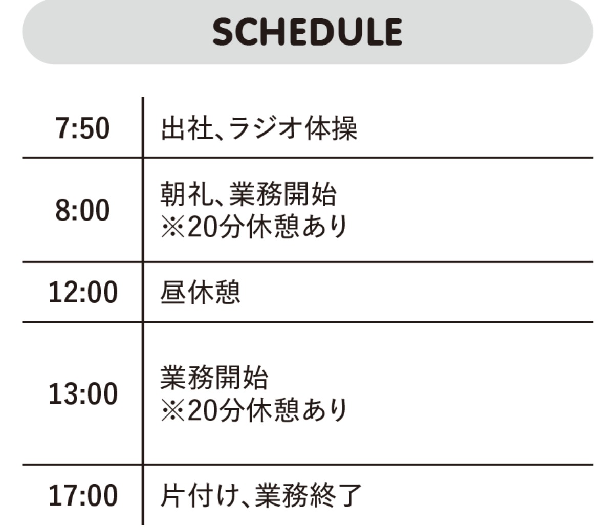 ●休日休暇/①②週休2日制(月2回土曜休)、③④週休2日制