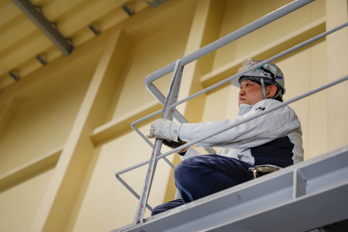 協力会社の人と一緒に現場に出向き、コミュニケーションを図りながら、配管の製作や取り付け、機器の据付などの業務も数多く推進してきた業績を見込まれ、工場長として管理業務を担当することに。