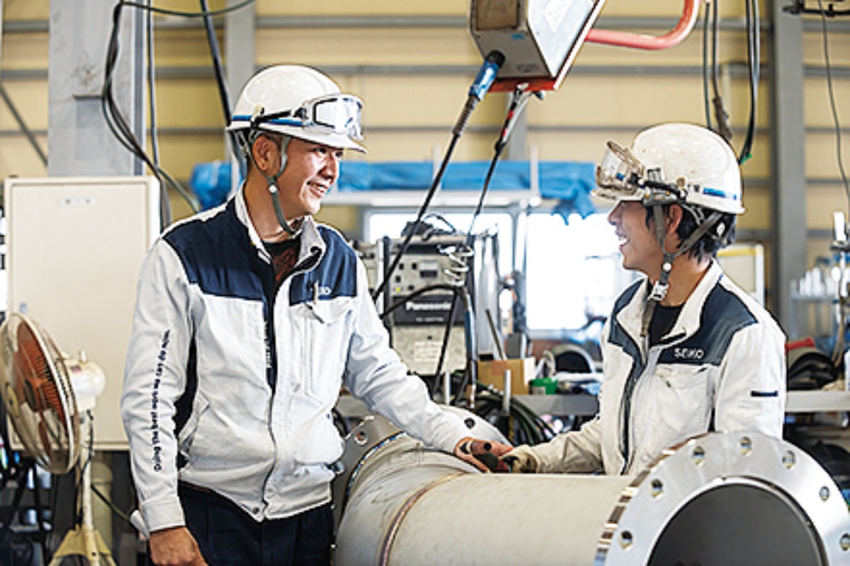 10代〜30代の割合は社員全体の60%!溶接や管工事の資格取得支援も手厚く、若い世代が活躍できる環境が整っている。