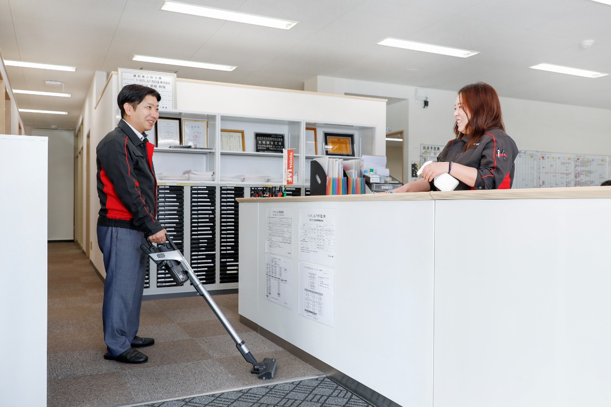 上下関係や部署の垣根をなるべく取り払うべく、毎朝の清掃などは社長だけでなく役職陣も全員参加しています。