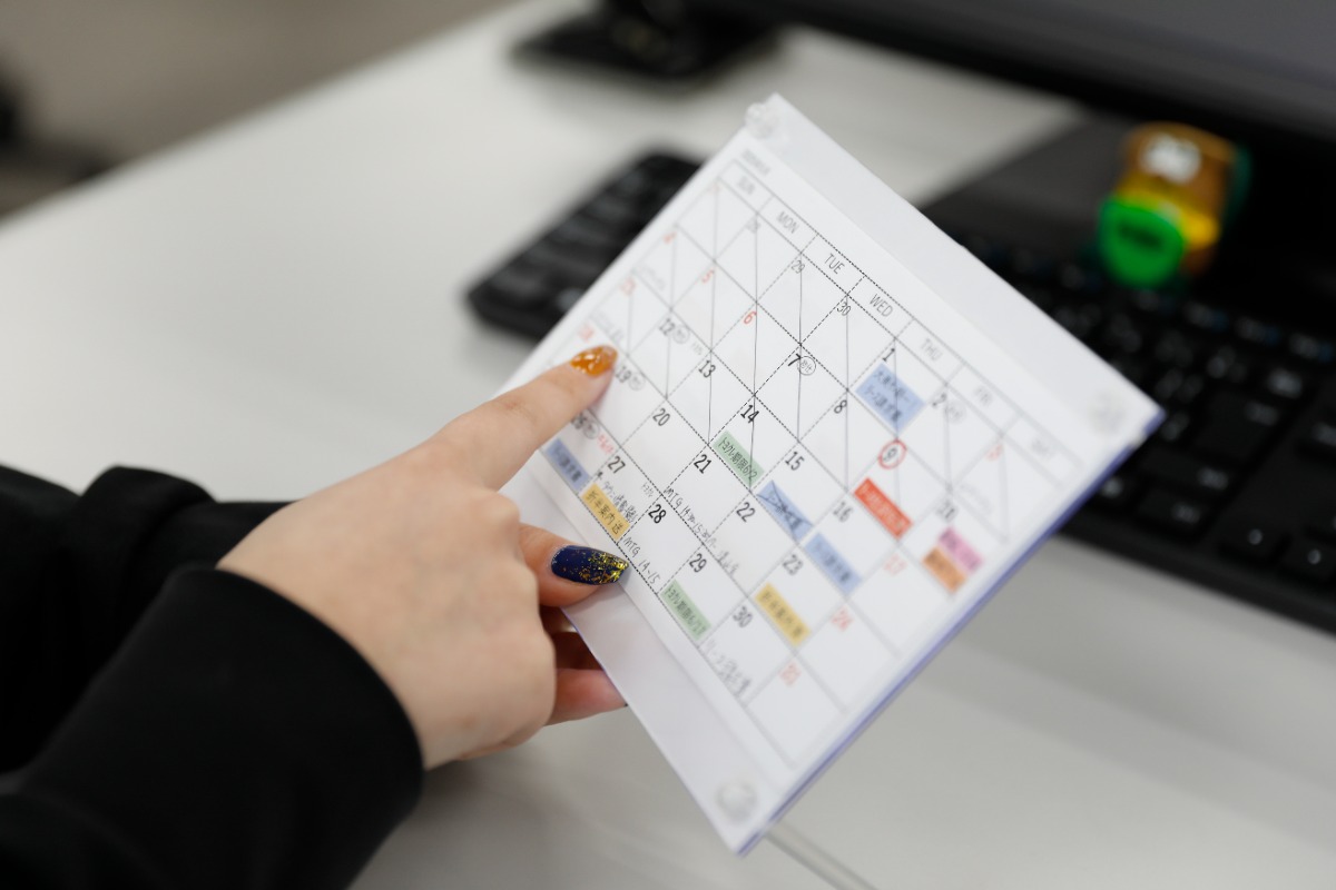 お手製の卓上カレンダーを使ってます。スケジュールは普段デジタル管理ですがパッと予定を確認したい時に便利!