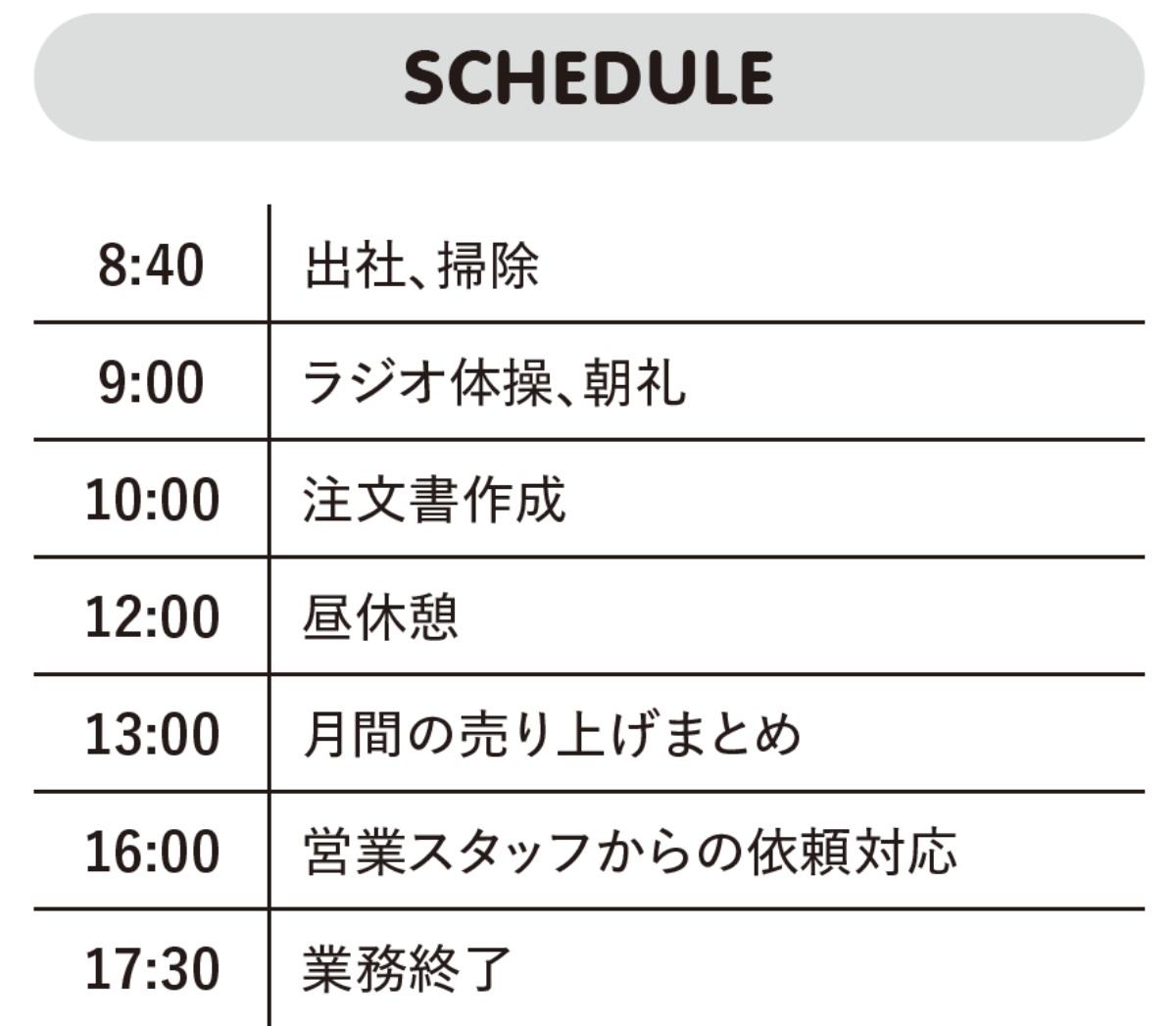 会社として有給休暇の取得を推奨しており、月に8日以上の休みが取得可能。子育てや趣味に時間を費やす社員も多く、充実して働ける環境が整う。