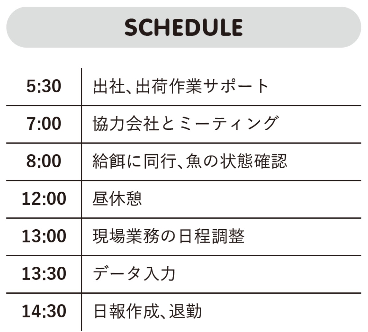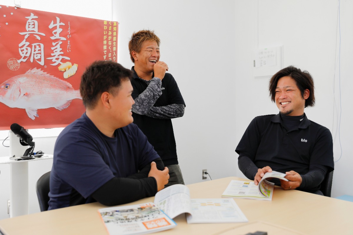 「所属は違う会社でも、質の良い魚を育てたいという目的は同じ」と語る濱口さん。協力会社との密な関係性を構築するべく、対面でコミュニケーションを取る際の笑顔や表情には特に気を遣っているそう。