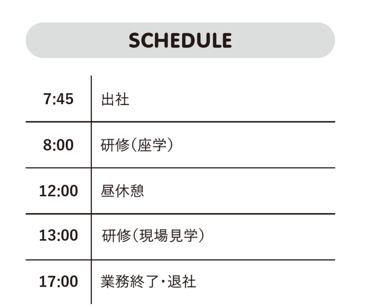 ●勤務時間/8:00~17:0(0 休憩12:00~13:00))