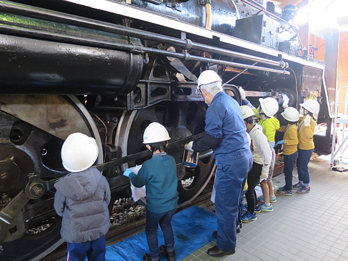 蒸気機関車を錆止め用オイルで磨きながら、その構造や動く仕組みを学ぶ体験型イベントです。