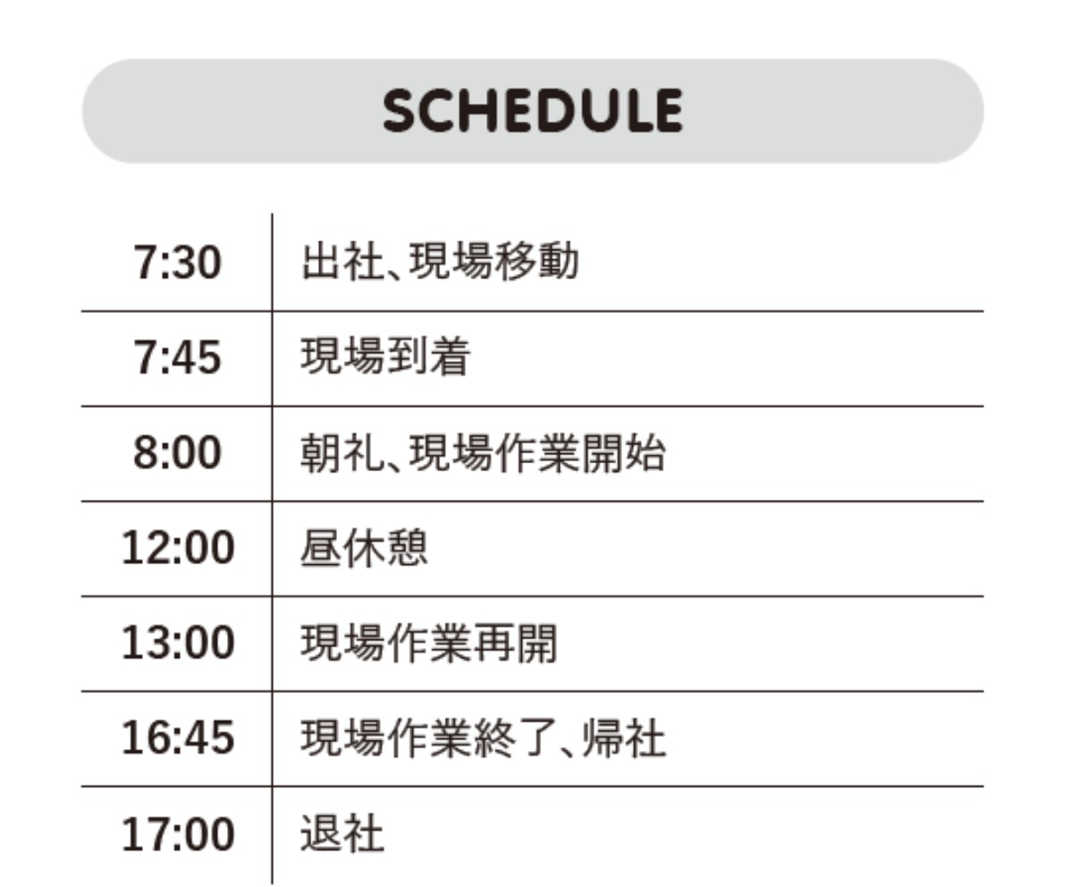 ●勤務時間/8:00~17:00( 休憩時間60分)