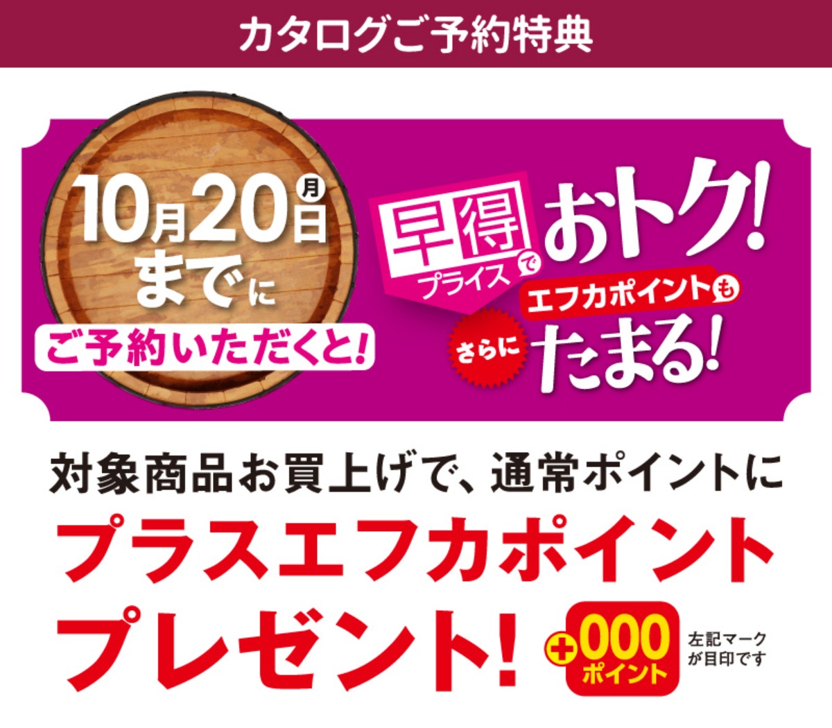 ※プラスポイント数は、エフカポイント○倍セールの場合でも変わりません。