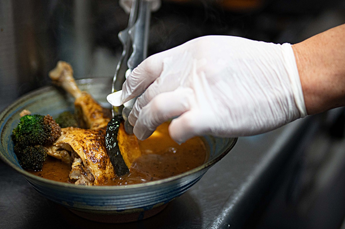愛媛や北海道産の野菜と、チキンレッグが丸ごと入った「チキンスープカレー」がおすすめ。