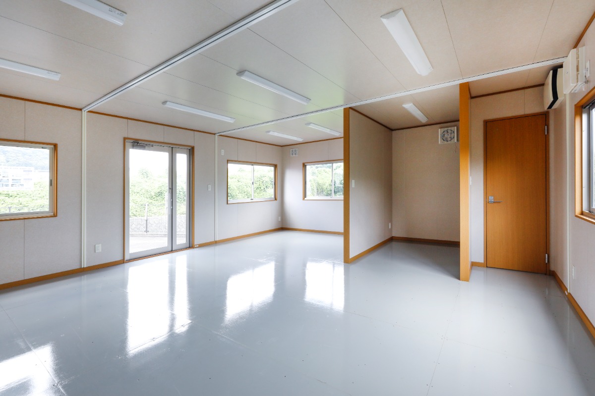 設置だけで使える単体タイプと、連結して大型化できる連棟タイプを展開しています。デザインやサイズの種類も豊富で、いずれも強度・耐久性に優れており、仮設とは思えない快適さが魅力的です!