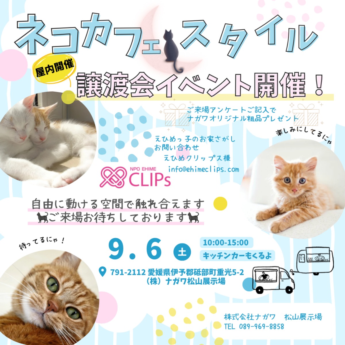 9月6日(土)10~15時にネコカフェスタイルの譲渡会イベントを開催!