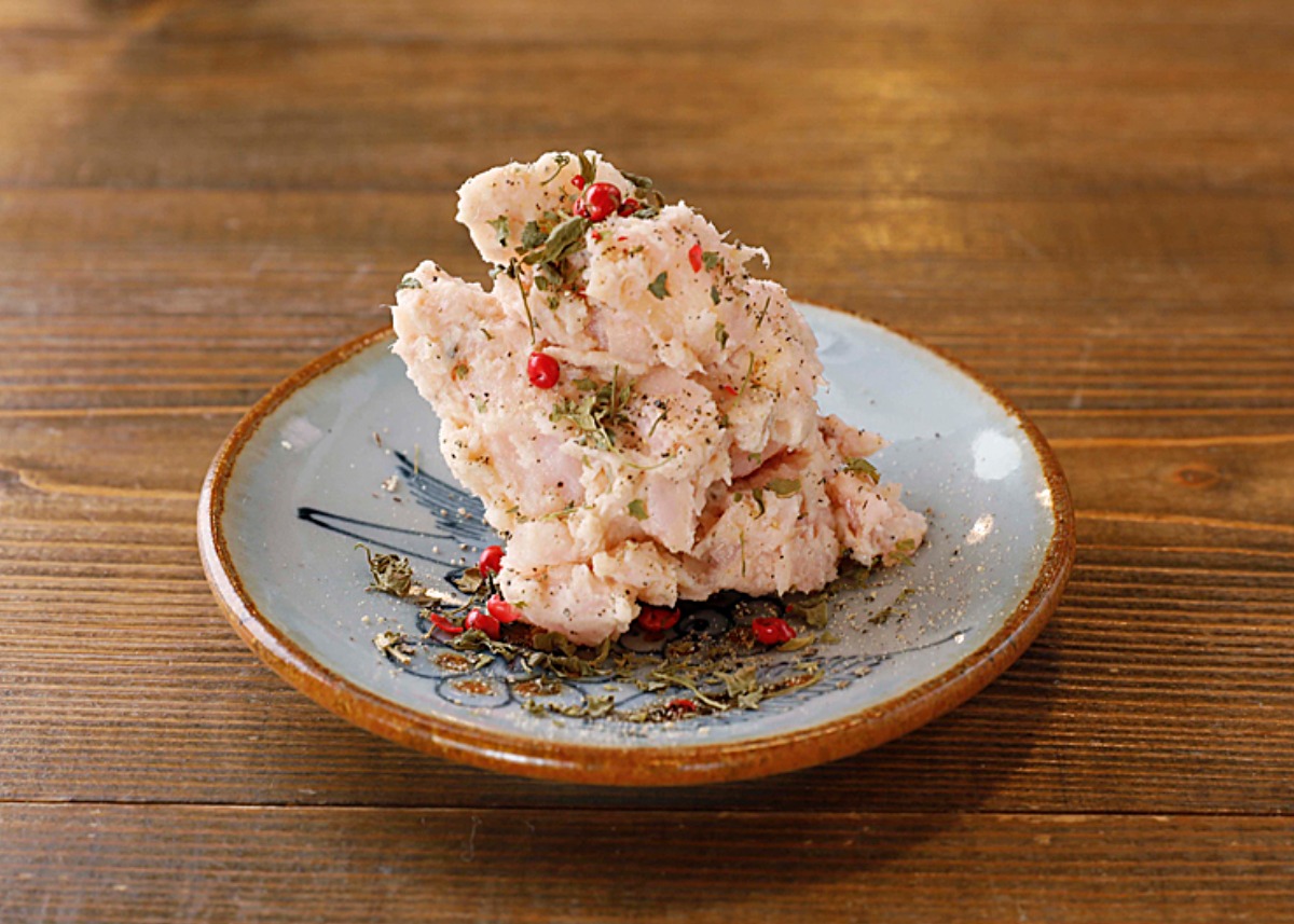 赤い野菜のビーツを使用しているのでほんのりピンク色のポテトサラダ