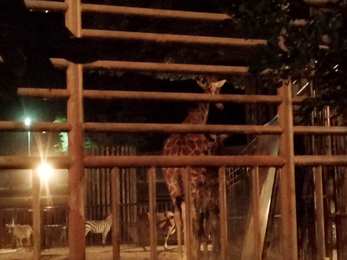 動物園の人気者達、カバやキリンにゾウの姿も夜にはまた一味違った楽しさがあります。