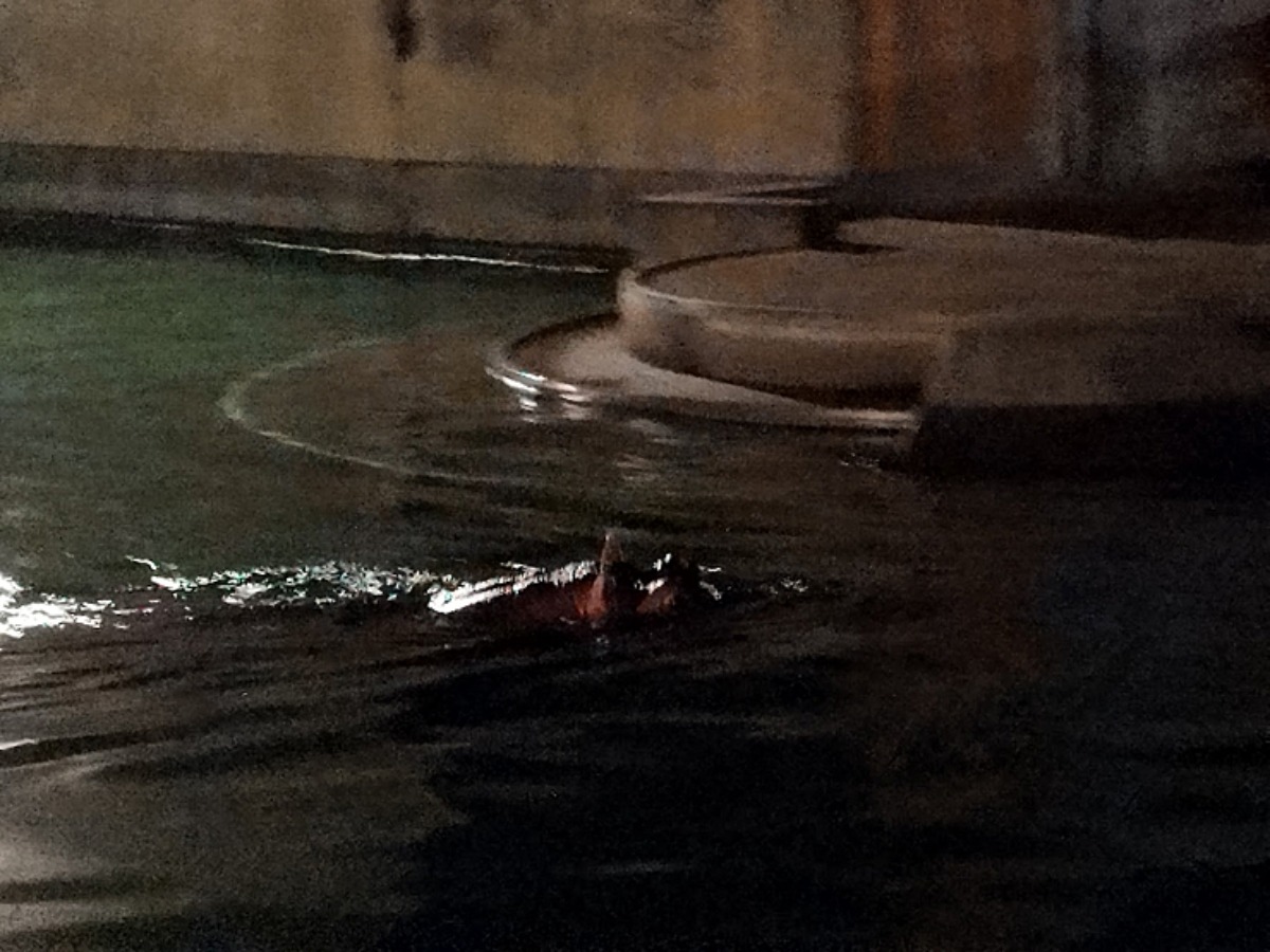 闇夜からプカっと浮き出たカバを発見!泳ぎが上手です。