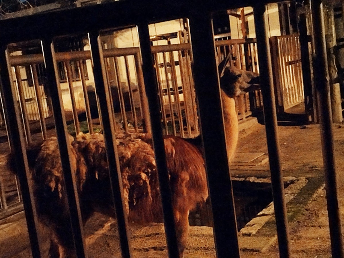 夜の園内を優雅に歩くラマをパシャリ。