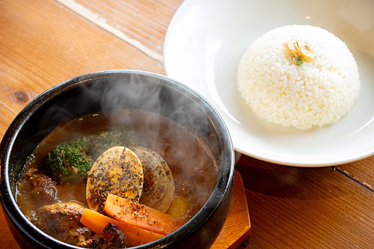 ご飯も選べる!グツグツ石鍋の薬膳スープカレー