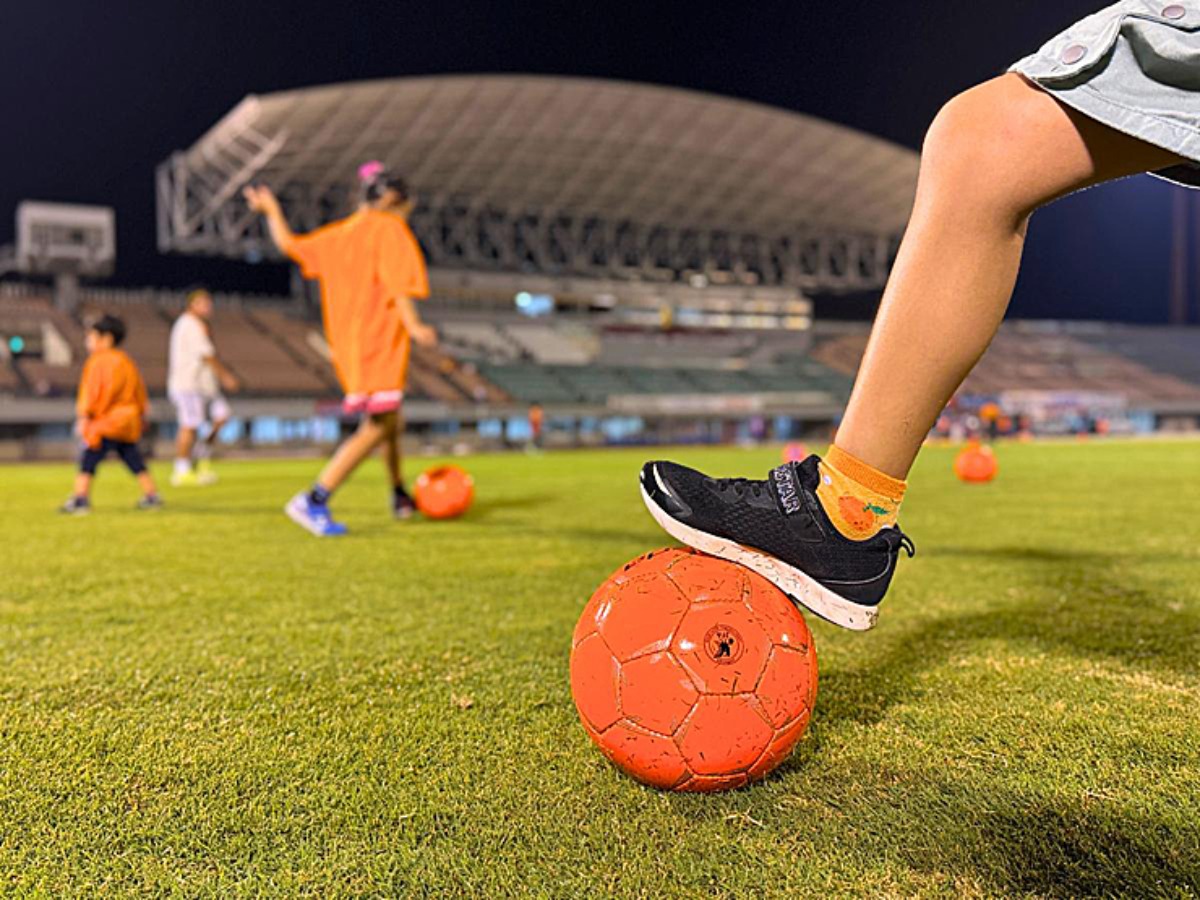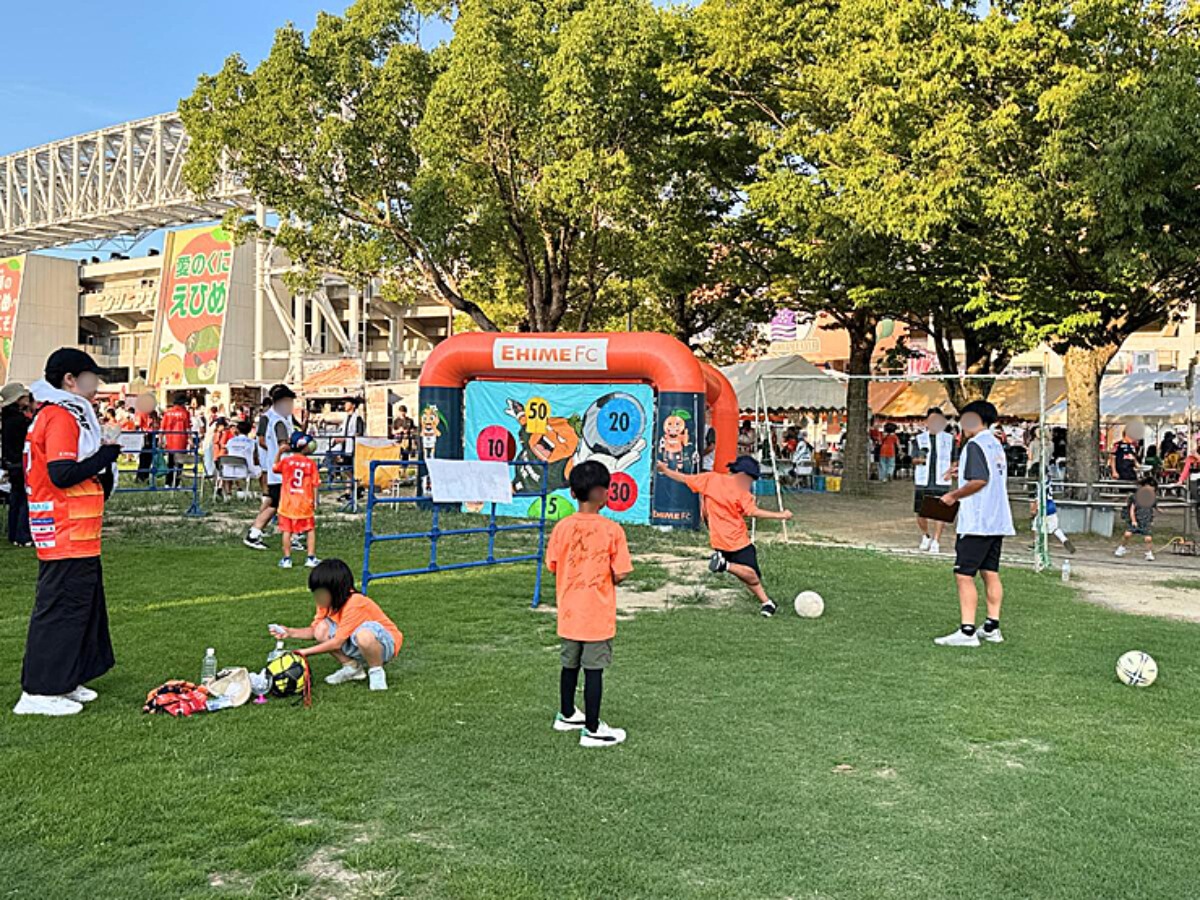 『柑太パーク』と呼ばれる広場には、トランポリンやドリブルスピード、キックdeポン!など、試合前に子どもたちが遊べるアトラクションゾーンもありました。