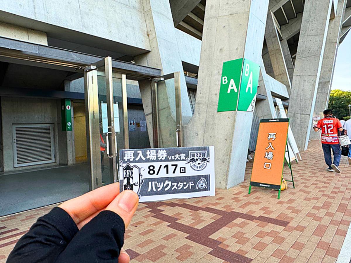 一旦スタジアムの外へ出る時は、再入場口で再入場チケットの入手を忘れずに!