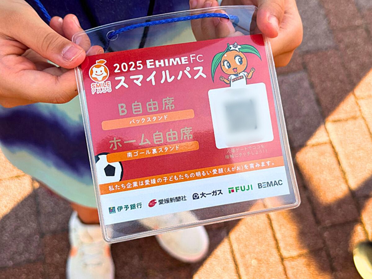 料金/席種により変動。レポートのB自由席は、前売り一般大人2,100円、当日2,500円。小学生以下は、愛媛FCスマイルパス使用で観戦無料(2025年8月現在)