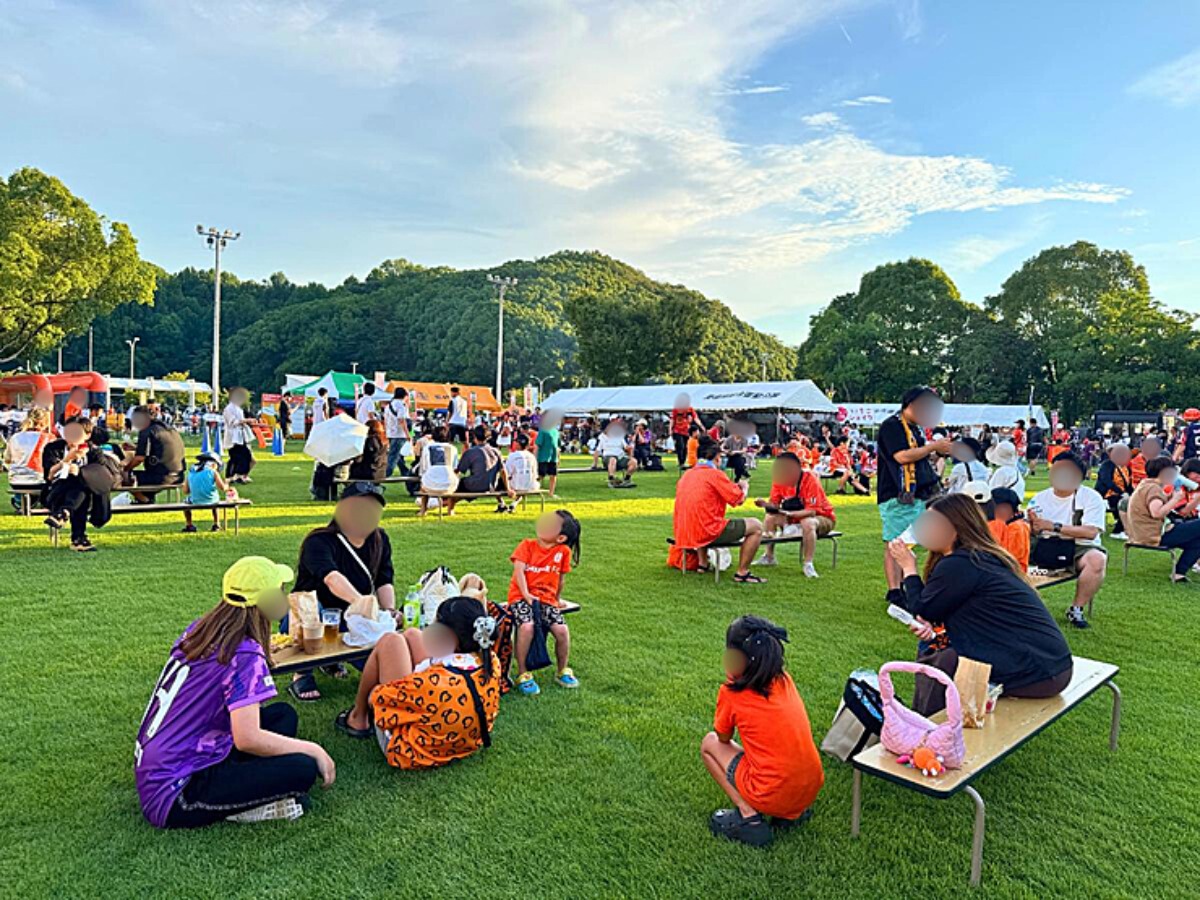 芝生エリアには椅子の用意があり、スタジアムの席へ戻らずとも、購入したグルメを熱々の状態で食べることができて良かったです。