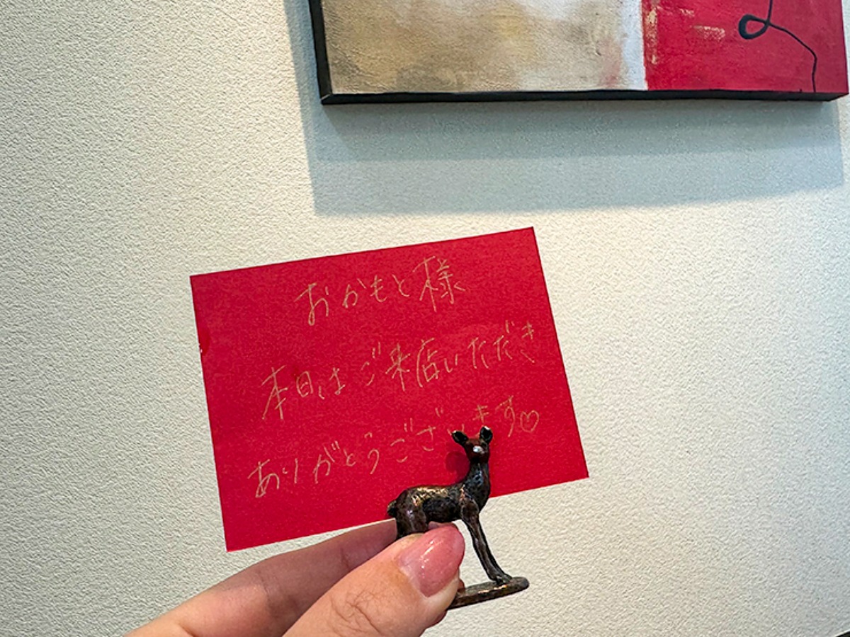 席に案内されて一番最初に目に入ったのが、こちらのメッセージカード。手書きで「ありがとうございます」と添えられていました。さりげない気遣いですが、お忙しい中、書いてくれたんだと思うとなんだか心がほっこり……。ランチを頂く前からもう満たされちゃっています♪